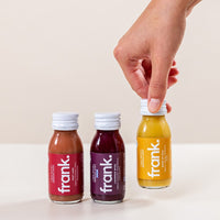 "Alle Säfte von The Frank Juice werden in einem HPP-Kaltpressverfahren ohne Hitze hergestellt, das hat zum Vorteil, dass alle Vitamine, Nährstoffe und Enzyme top erhalten bleiben. Auch auf Konzentrate oder Pürees wird verzichtet, um das Maximale an Vitaminen herauszuholen."