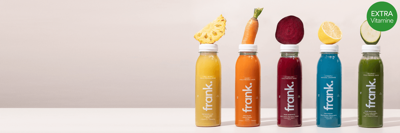 "Alle Säfte von The Frank Juice werden in einem HPP-Kaltpressverfahren ohne Hitze hergestellt, das hat zum Vorteil, dass alle Vitamine, Nährstoffe und Enzyme top erhalten bleiben. Auch auf Konzentrate oder Pürees wird verzichtet, um das Maximale an Vitaminen herauszuholen."