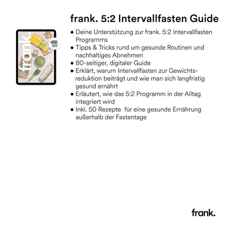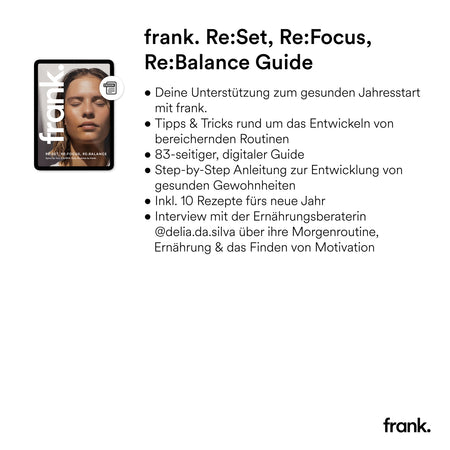 Informativ, spannend und unterhaltsam: Die perfekte Lektüre über frank Produkte, gesunde Alltagsroutinen und leckere Rezepte für gemütliche Nachmittage auf dem Sofa oder unterwegs in der Bahn. Dank digitaler Form immer auf Deinem Handy bei Dir.