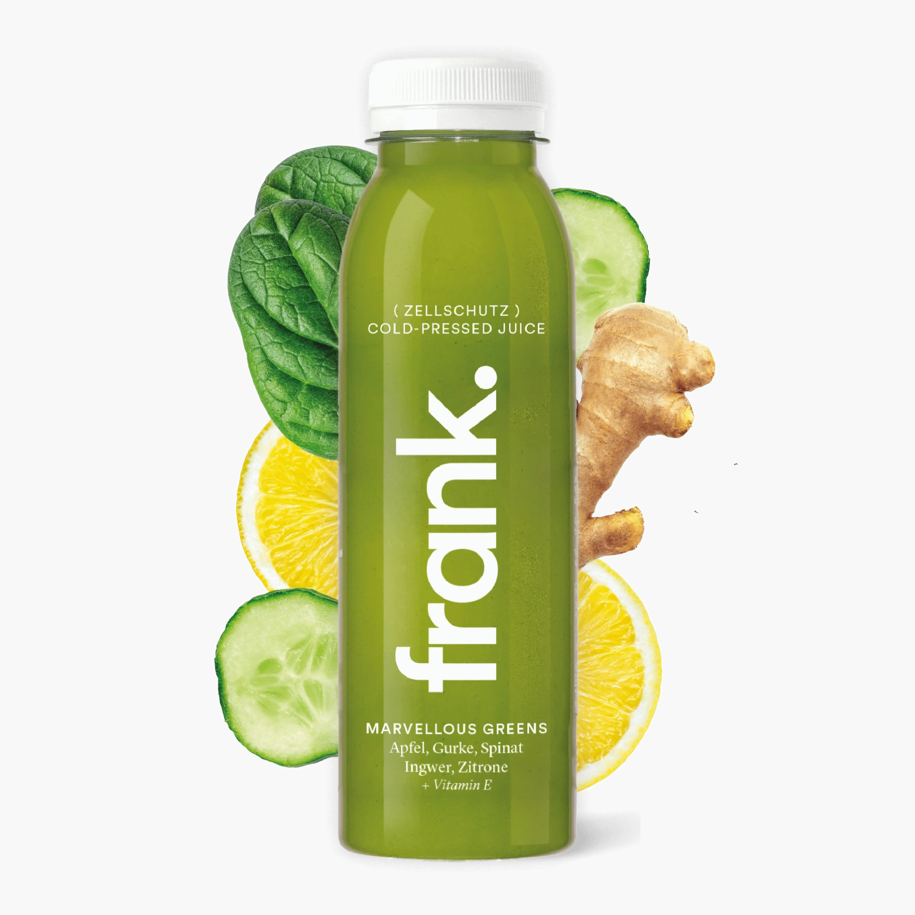 Erlebe in einer frank. Juice Flasche Marvellous Greens: