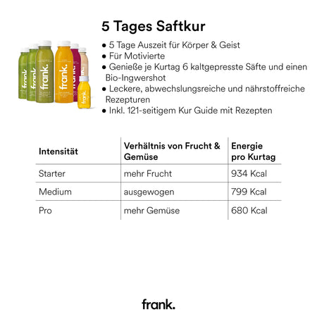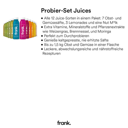 Prüfe direkt nach dem Erhalt Dein Paket und lass’ es Dir schmecken! Wende Dich gerne bei Rückfragen an unseren Kundenservice: info@thefrankjuice.com. Verlinke uns gerne bei Instagram @thefrankjuice und teile Deine Erfahrungen mit unserer Community.
