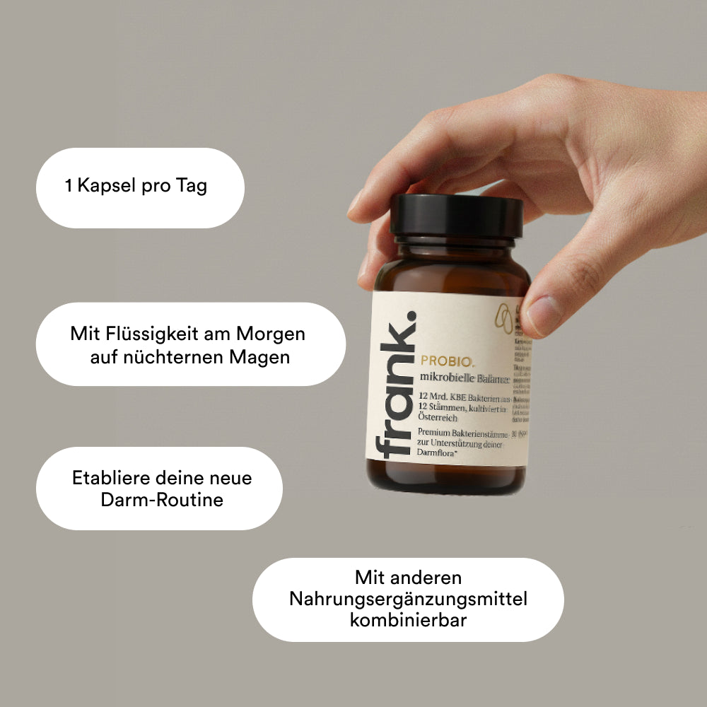 The frank. Daily Complete is suitable for all adults who want to add nutrients to their healthy lifestyle. In this way, you can prevent nutrient deficiencies and the associated symptoms. If you are already taking other food supplements or medicines, ask your doctor about possible contraindications.